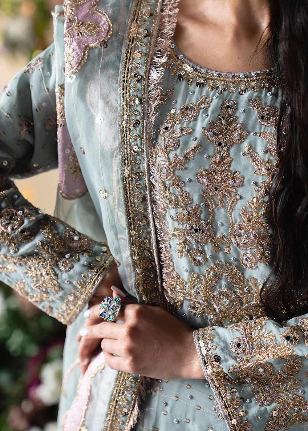 • Intricate traditional embroidery for a formal look