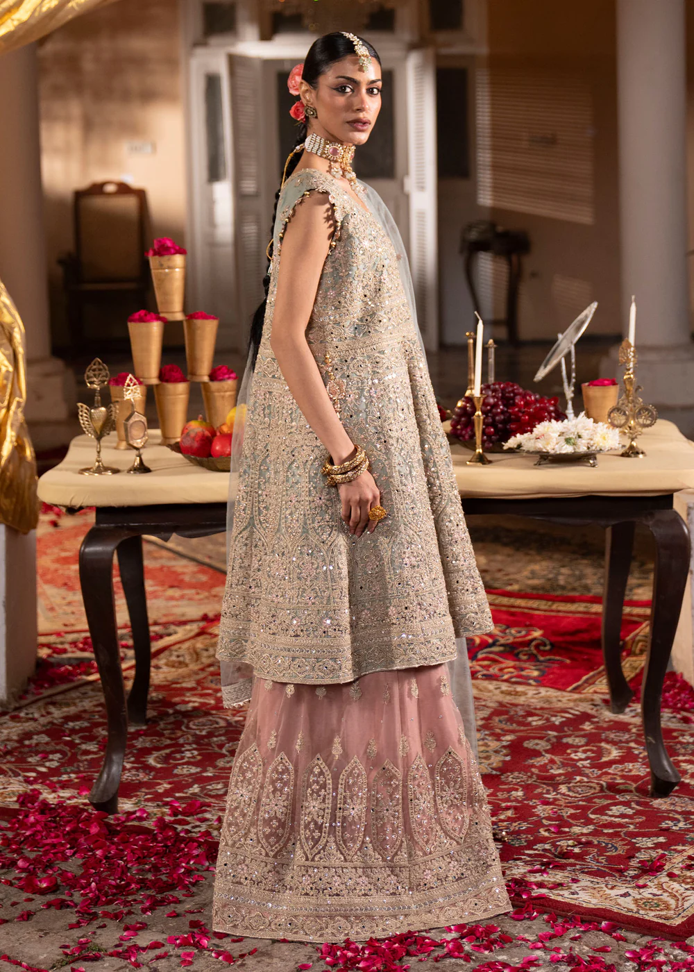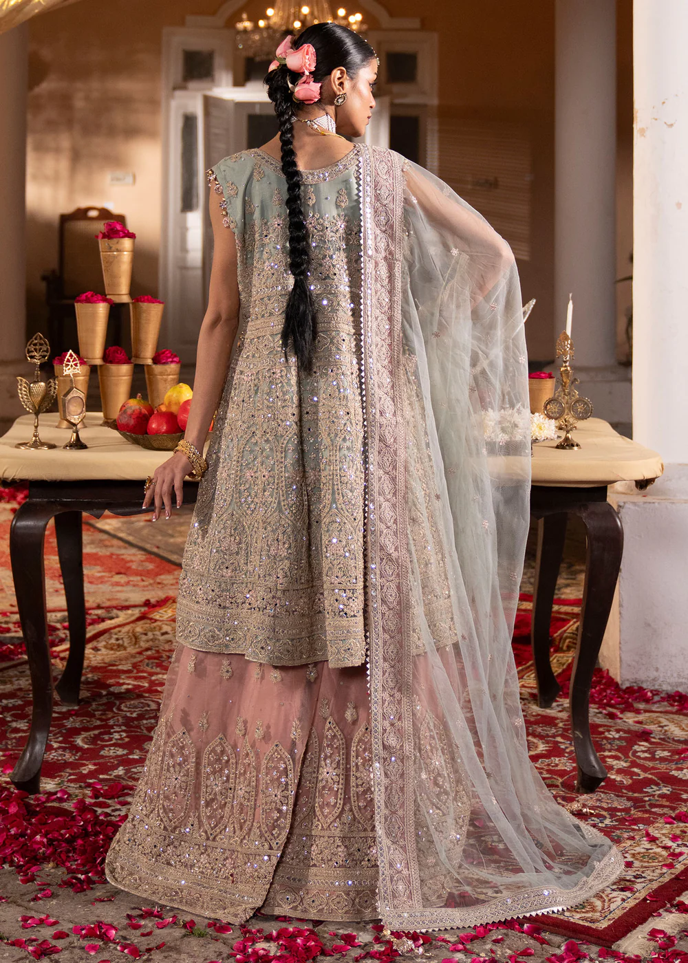The soft light blue color enhances its charm, making it an ideal choice for weddings, parties, and special occasions in any season. The flowy sharara adds volume and movement, while the net fabric gives a sophisticated and feminine appeal.