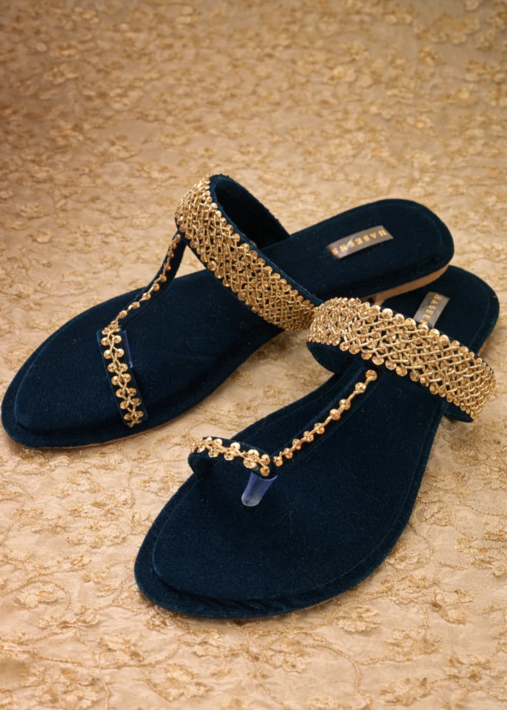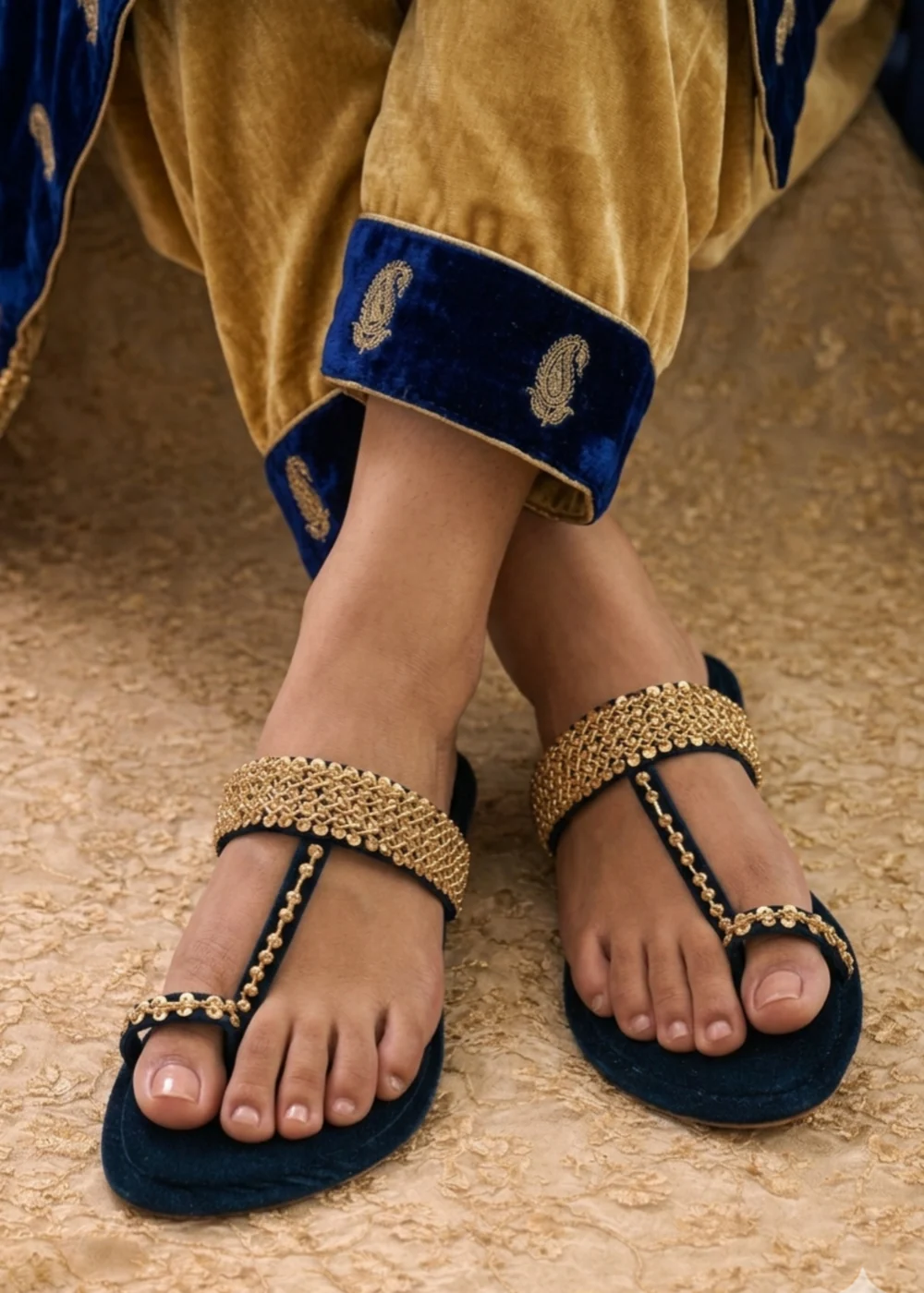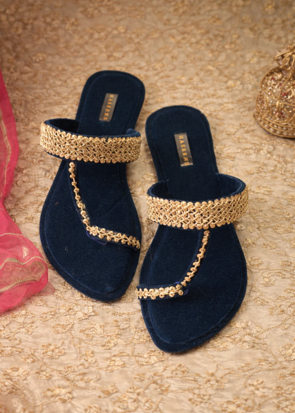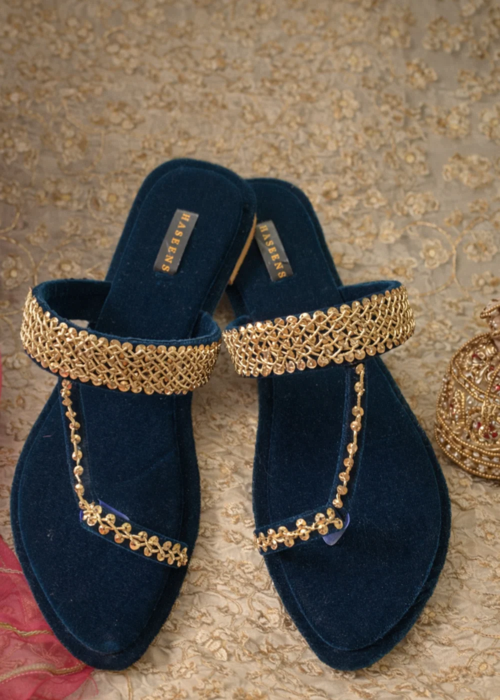 The rich navy blue tone adds a timeless appeal, making these heels a perfect match for traditional as well as western outfits. The soft velvet upper offers a premium feel, while the sturdy rubber sole ensures stability and ease of movement, even during long celebrations.