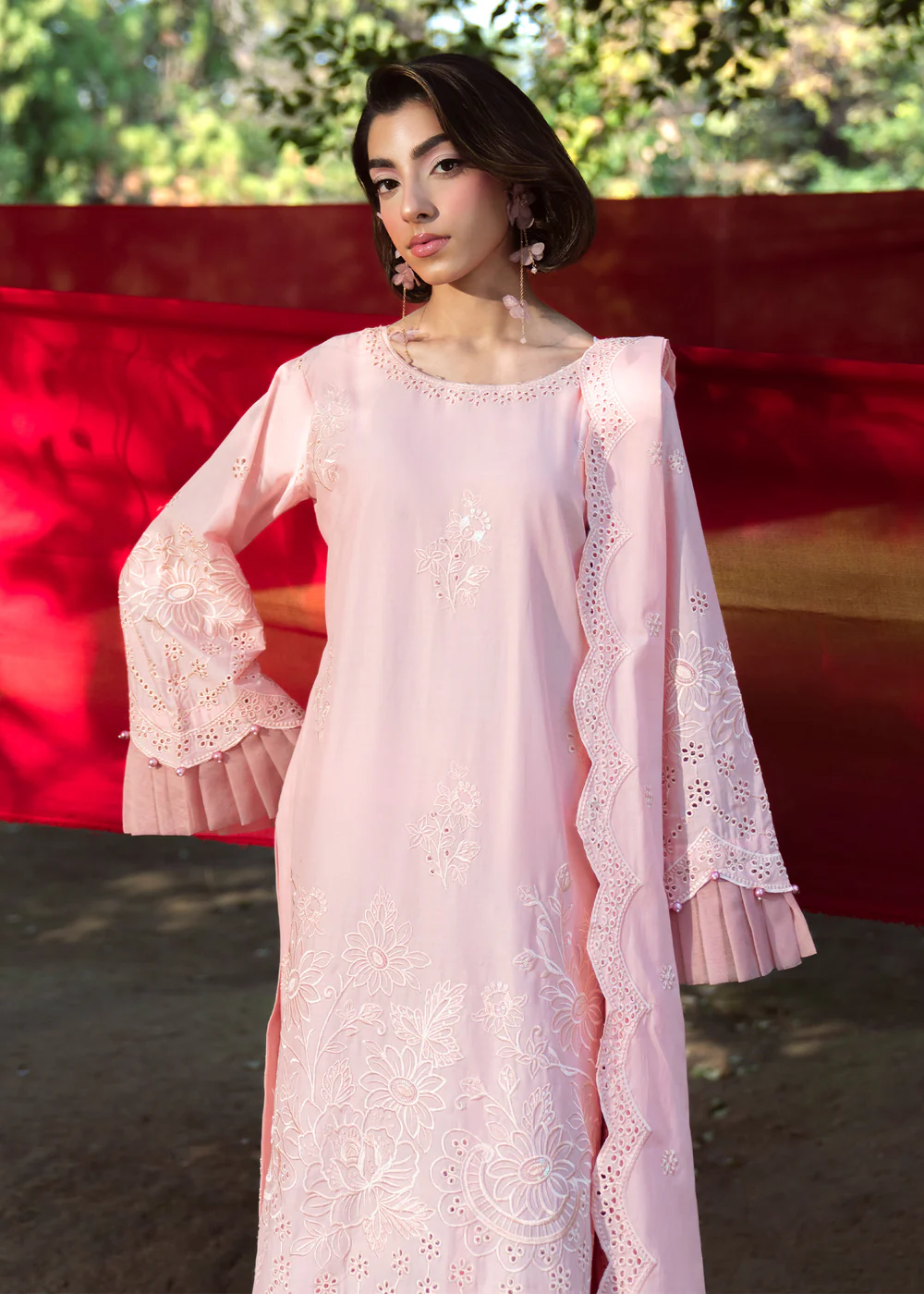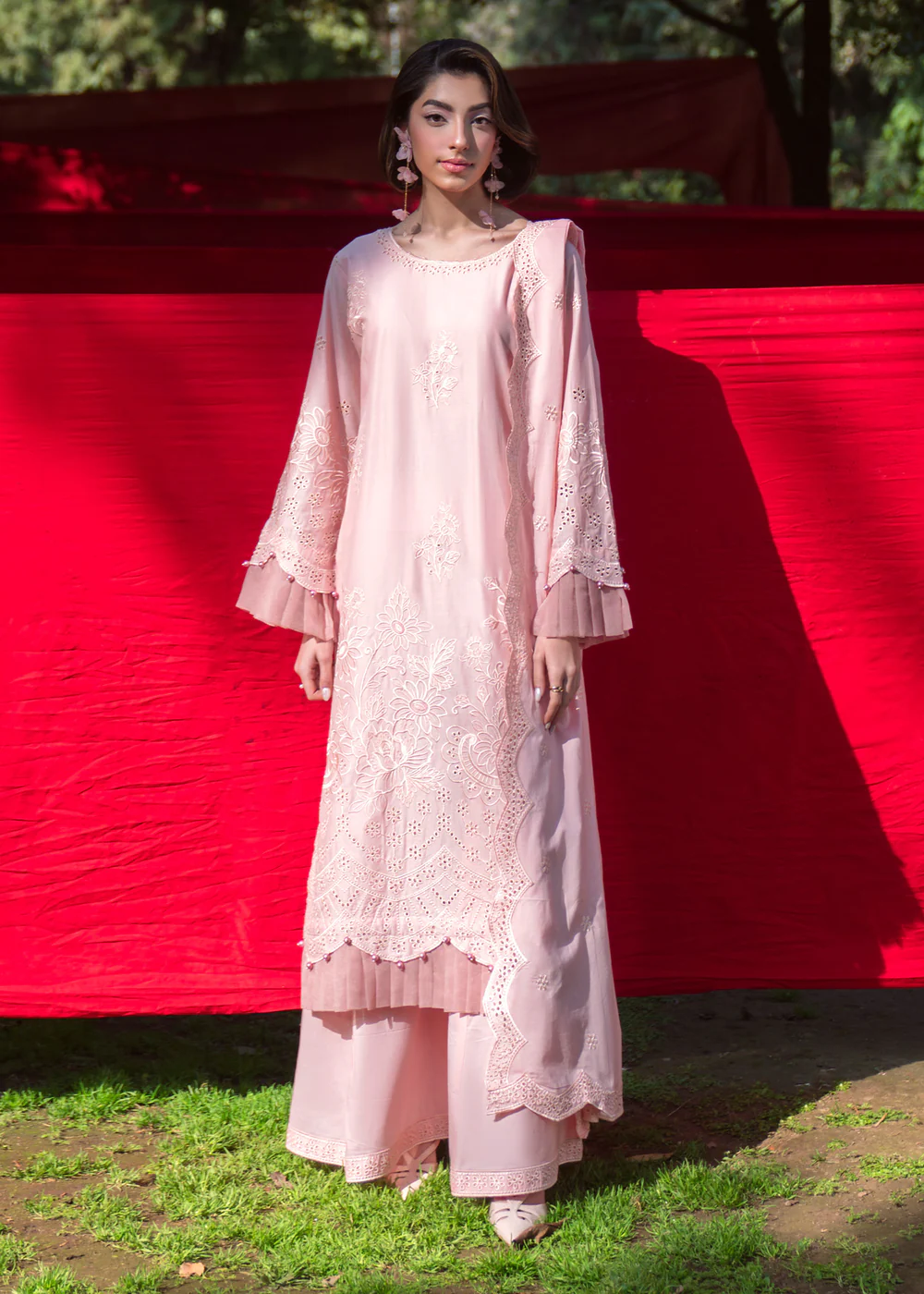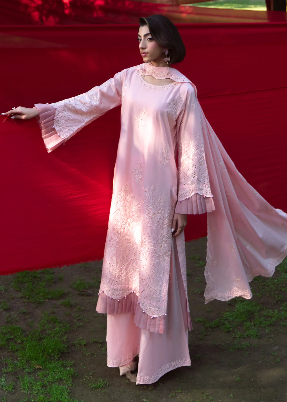 Refresh your summer wardrobe with this elegant pastel pink 3-piece lawn outfit, designed with timeless botanical motifs for a refined heritage-inspired look. The straight cut kurta offers a graceful silhouette, enhanced with delicate detailing and a soft inner lining as shown in the picture.