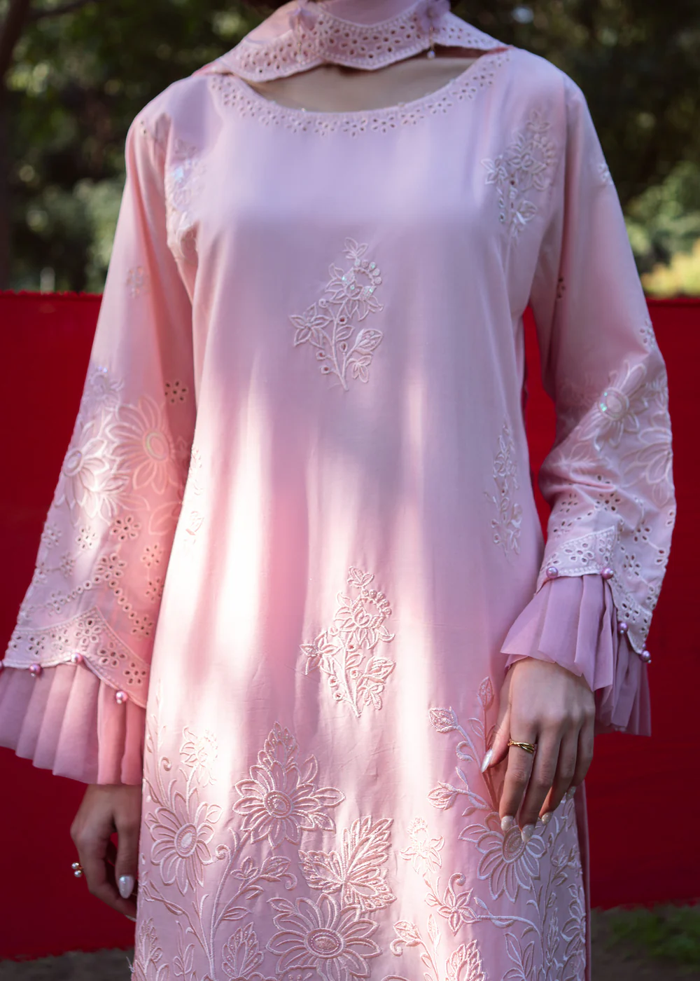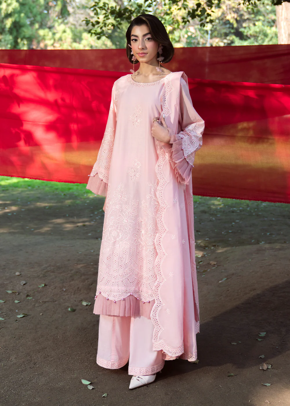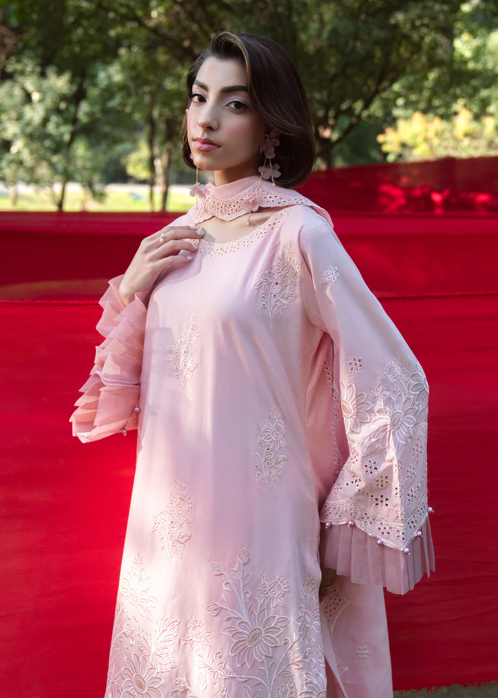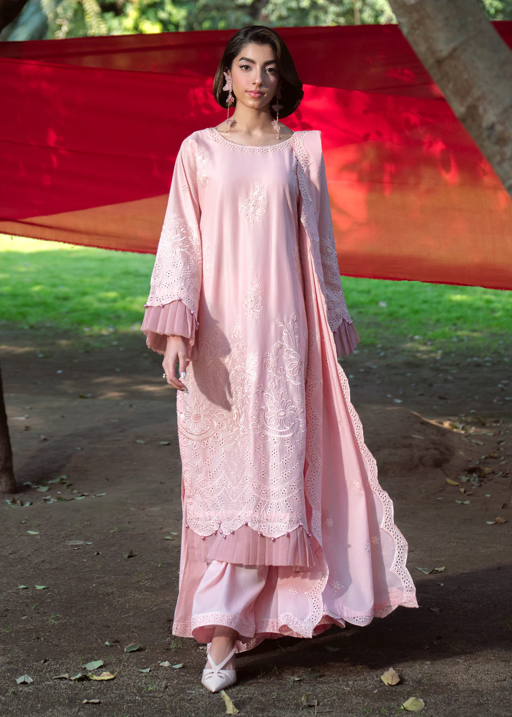 Refresh your summer wardrobe with this elegant pastel pink 3-piece lawn outfit, designed with timeless botanical motifs for a refined heritage-inspired look. The straight cut kurta offers a graceful silhouette, enhanced with delicate detailing and a soft inner lining as shown in the picture.