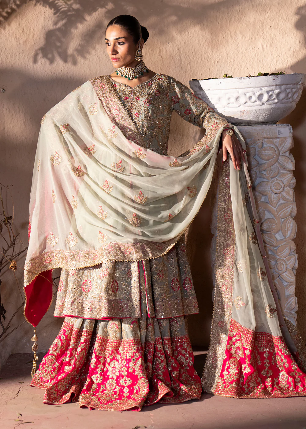 The flared lehenga style adds volume and movement, creating a flattering silhouette that enhances your elegance. The chiffon dupatta completes the outfit with a delicate and graceful finish, making it a must-have for those who appreciate timeless Eastern fashion.