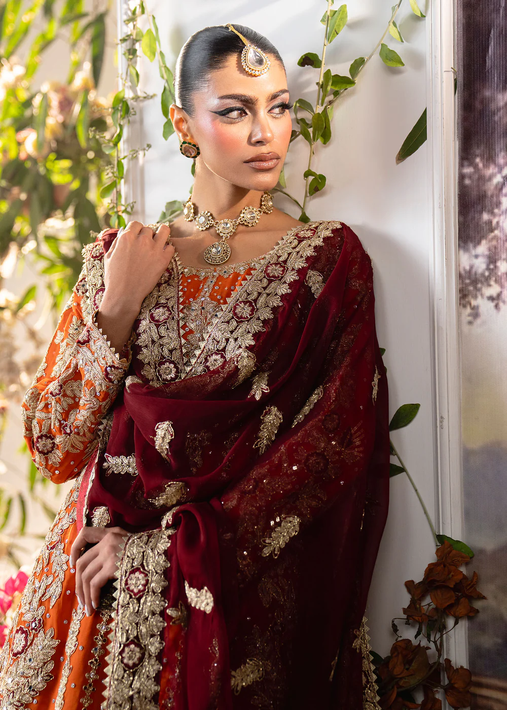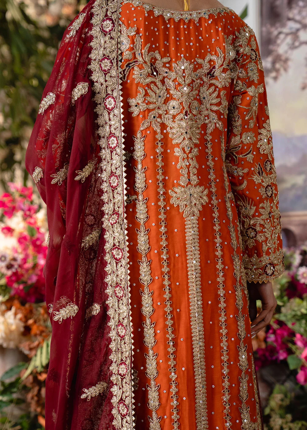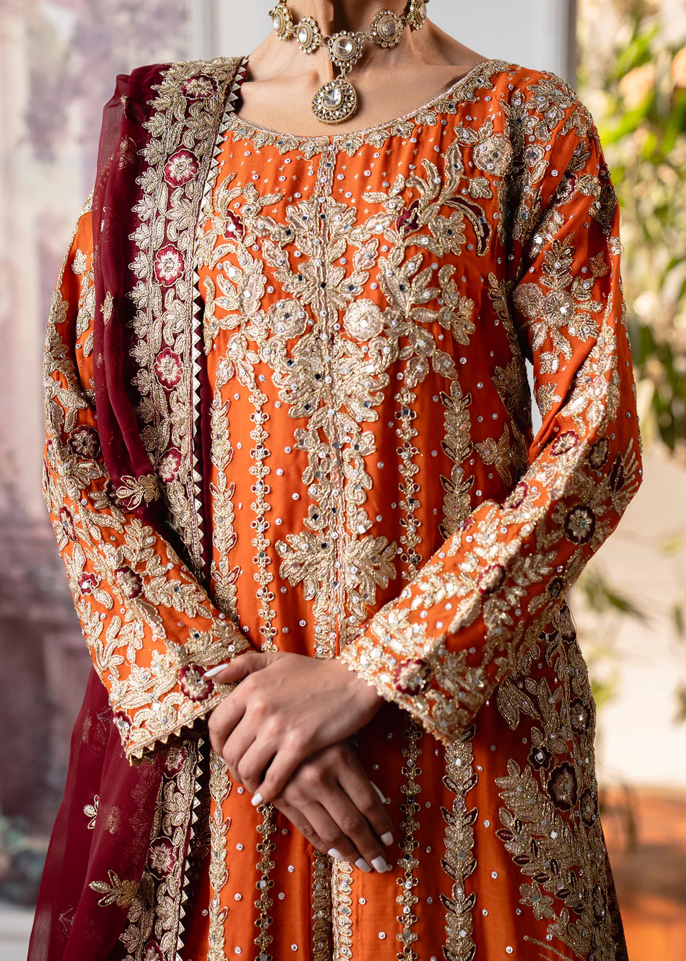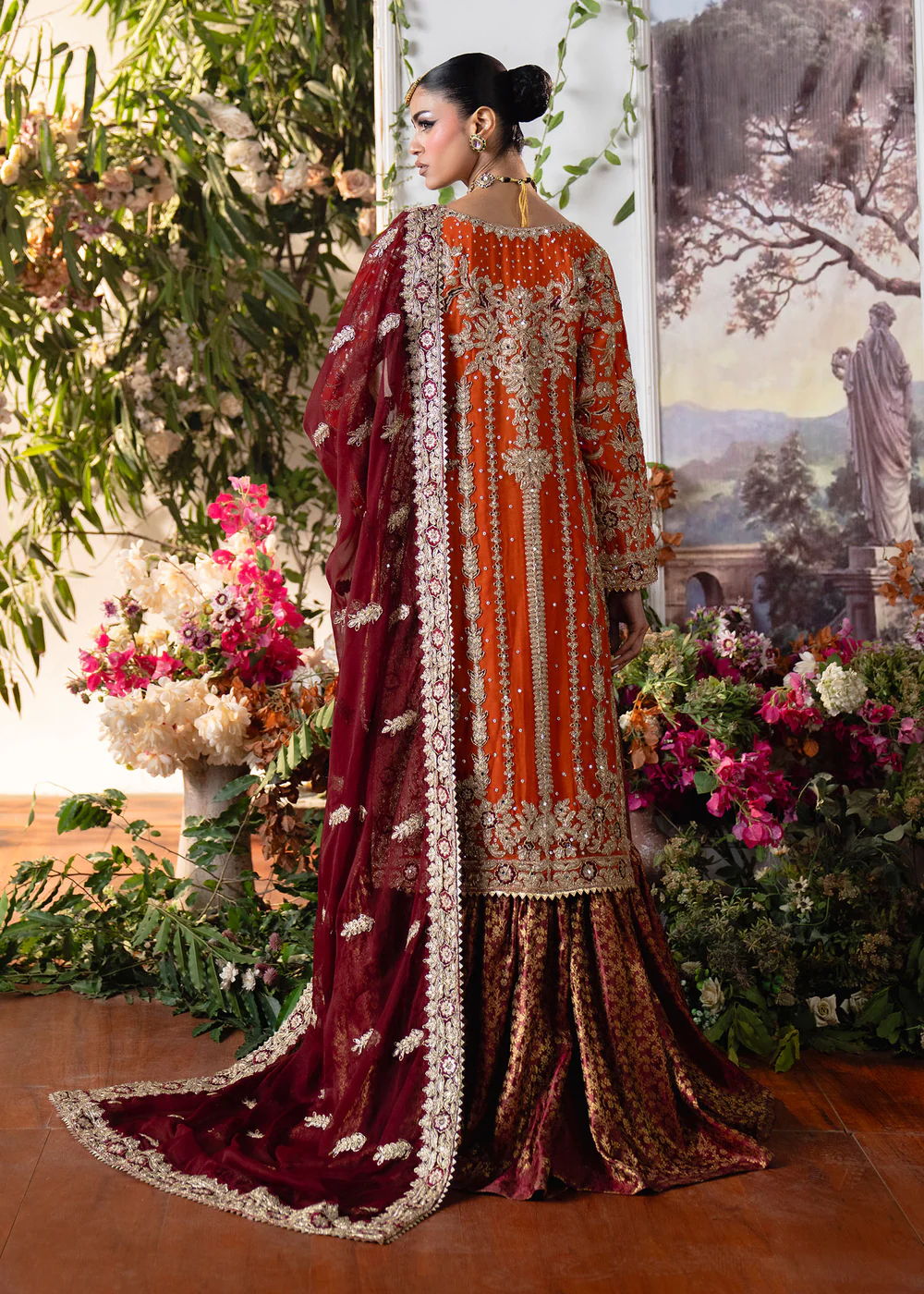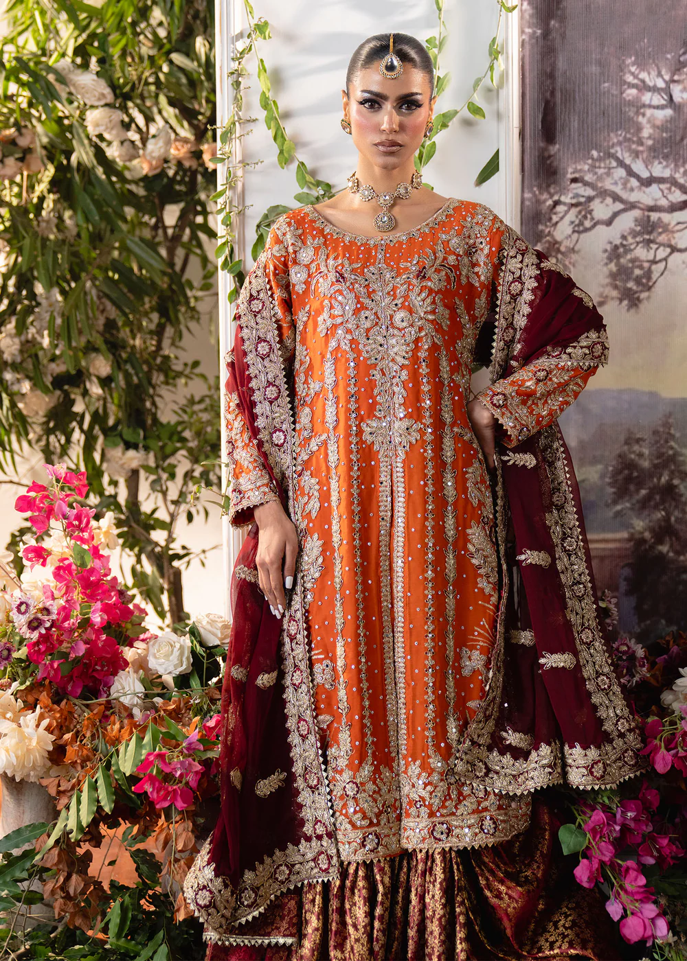 Pumpkin Orange Banarasi Gharara Set for Women – Flared Gharara Kurti with Net Dupatta | Wedding & Formal Guest Wear (3 Piece UIY4968)
