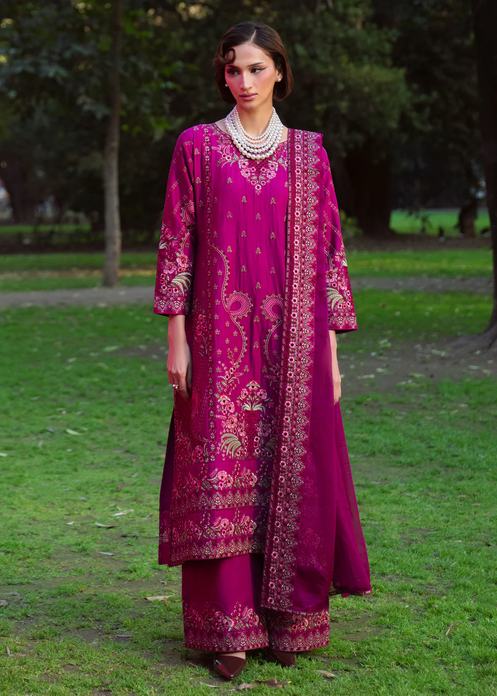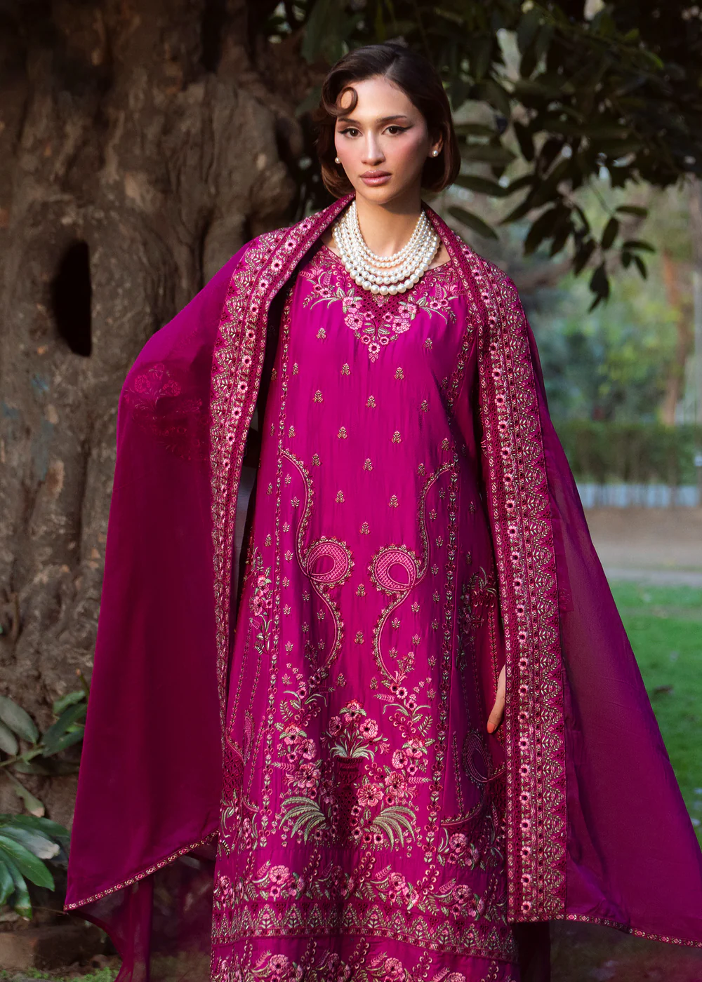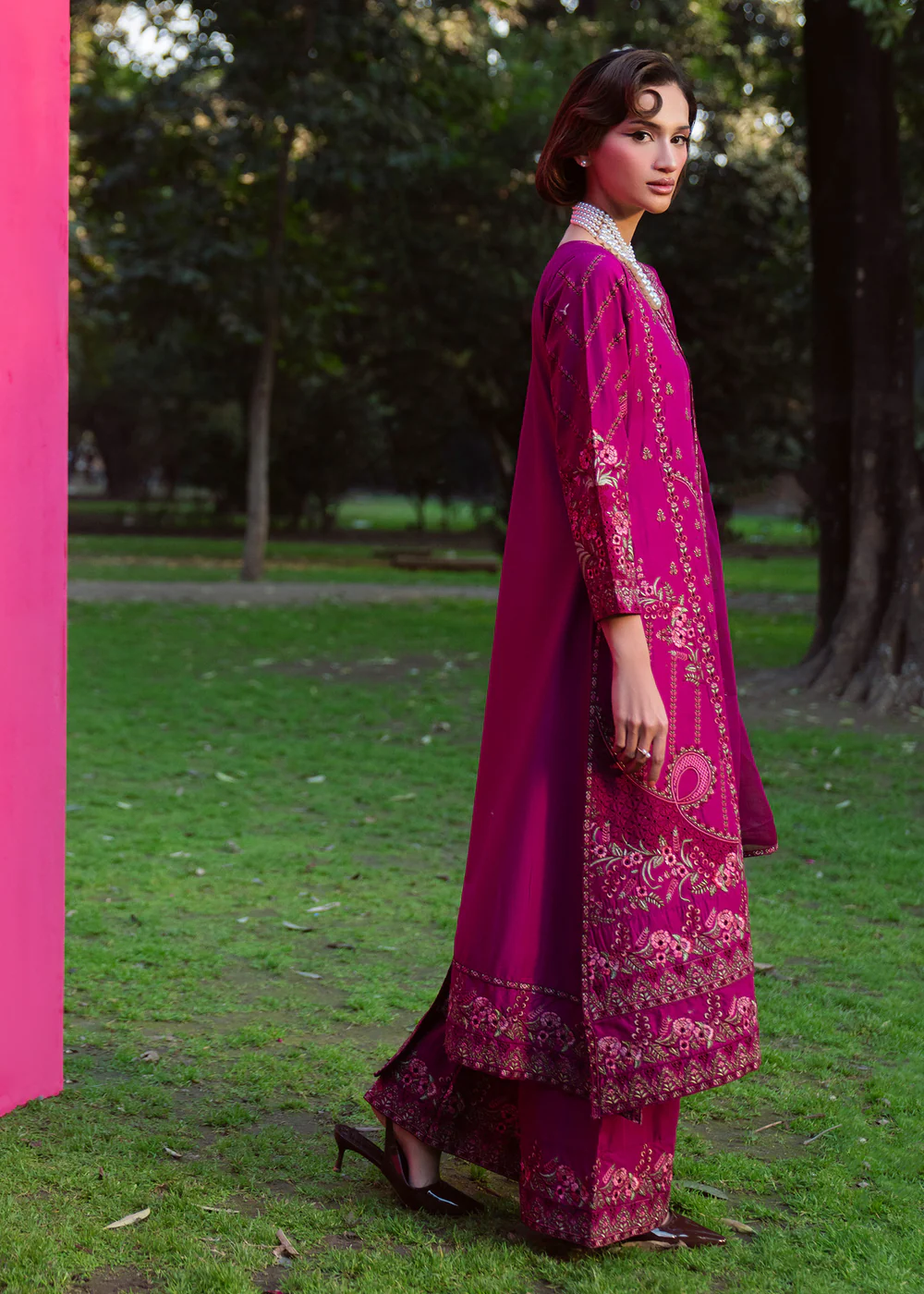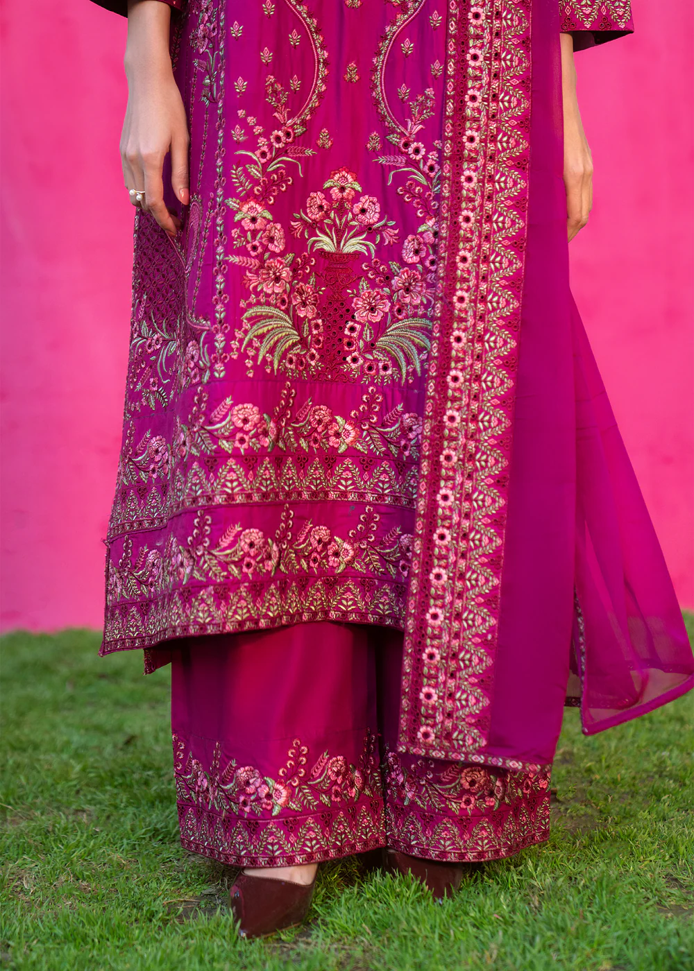 A bold shocking pink 3-piece lawn outfit featuring a straight cut kurta with matching trousers and dupatta—perfect for summer festive wear.